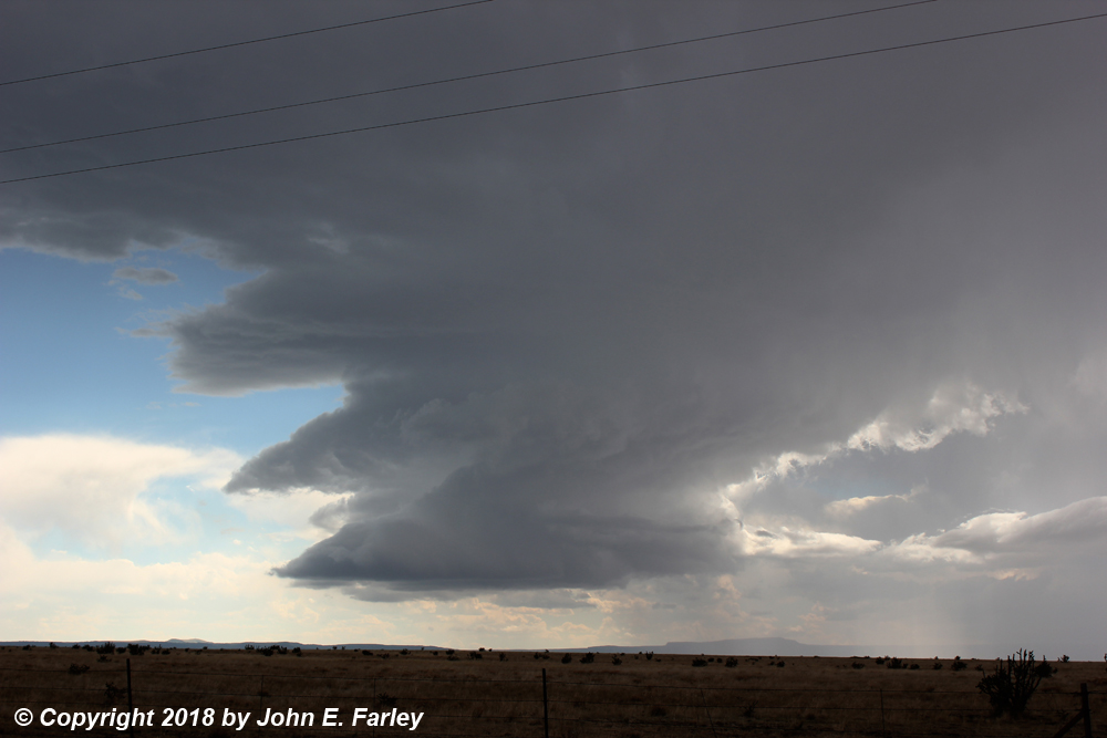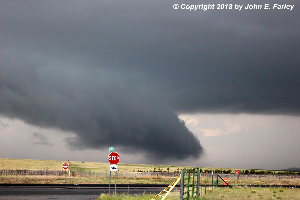 5:30-5:35 - At the intersection of NM 551 and NM 456, I look back NW at the meso, which now takes on a stacked-plate appearance: