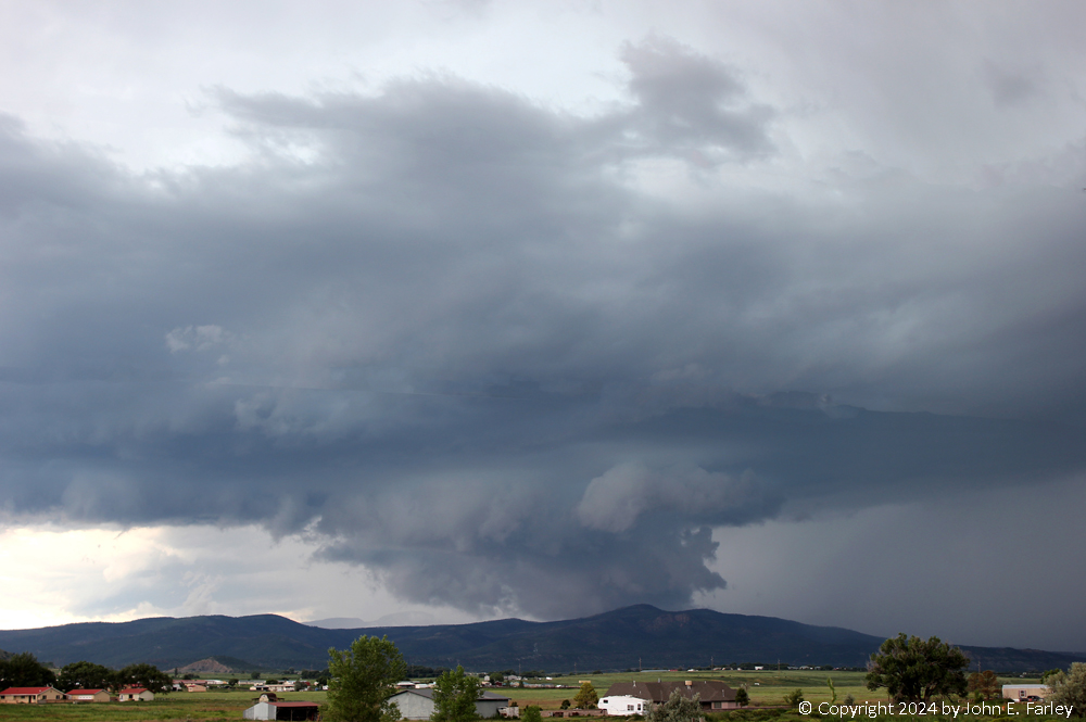 As to the earlier storm near Las Vegas that got the SVR warnings, the only hail report I saw was half-inch hail near Buena Vista (southeast of Mora) at 2:50 p.m. However, this storm was over thinly populated areas, and I have no doubt some larger hail fell somewhere but went unreported. There was also flash flooding from this storm on highway 94 near Manuelitas, and 2.35 inches of rain near San Pablo.