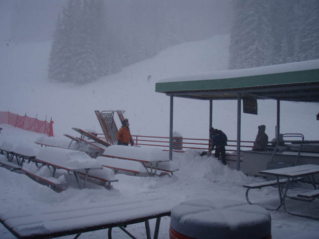 As usual, the snow was more intense in the mountains. The snow fell heavily at Ski Santa Fe until around noon, dumping a foot of snow on the ski area: