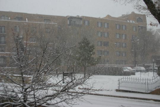 Once again, heavier snow returned as what was probably the strongst storm overall pushed from Arizona into New Mexico. (Earlier, this storm had produced record low barometric pressure readings at some locations in California and Oregon.) Many mountain areas in New Mexico received 6-10 or more inches of snow on Friday. The road from the city of Santa Fe up to the Santa Fe ski area was closed intermittently in the morning, with snowfall amounts by noon ranging from around 1.5 to 2 inches in town up to 9 inches at the ski area. This snow fell from the pre-dawn hours until around 10 a.m.