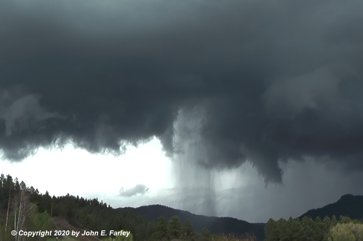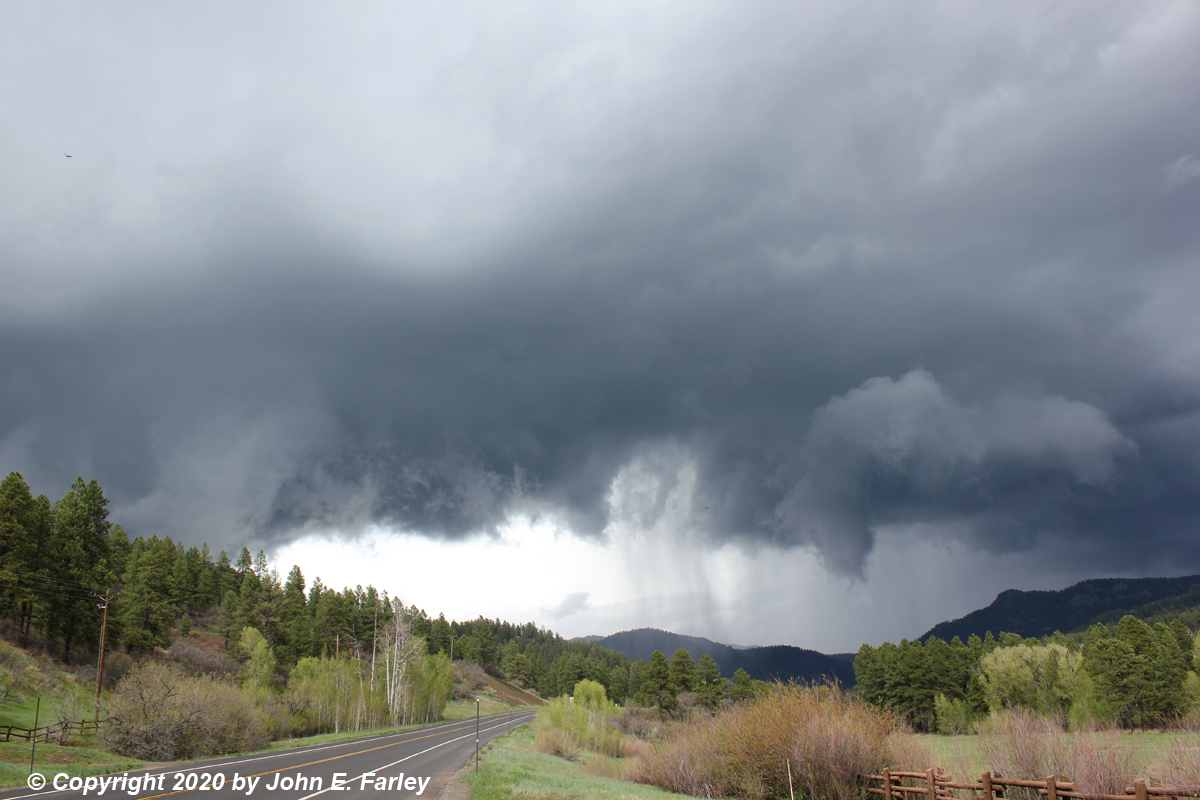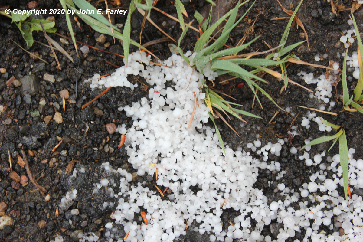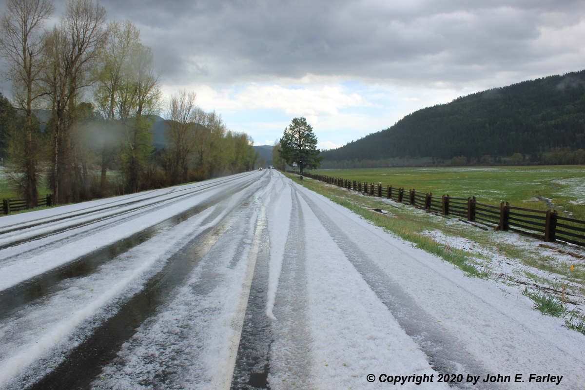 The video linked below shows the rapid cloud base motion associated with the first storm, hail, lightning, and thunder from the second storm from near the East Fork Campground turnoff, and a drive through the hail swath near the county line during the later stages of the second storm