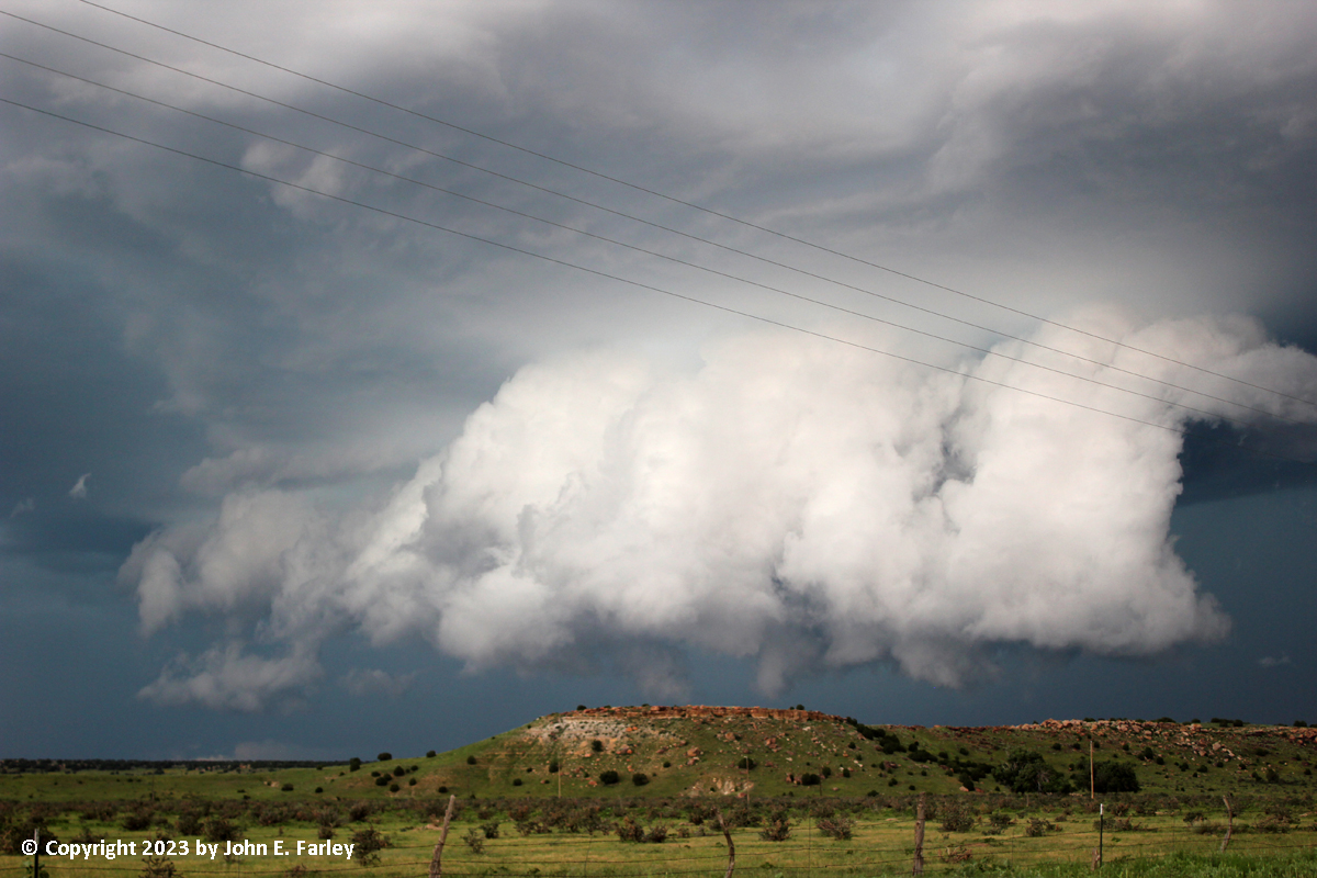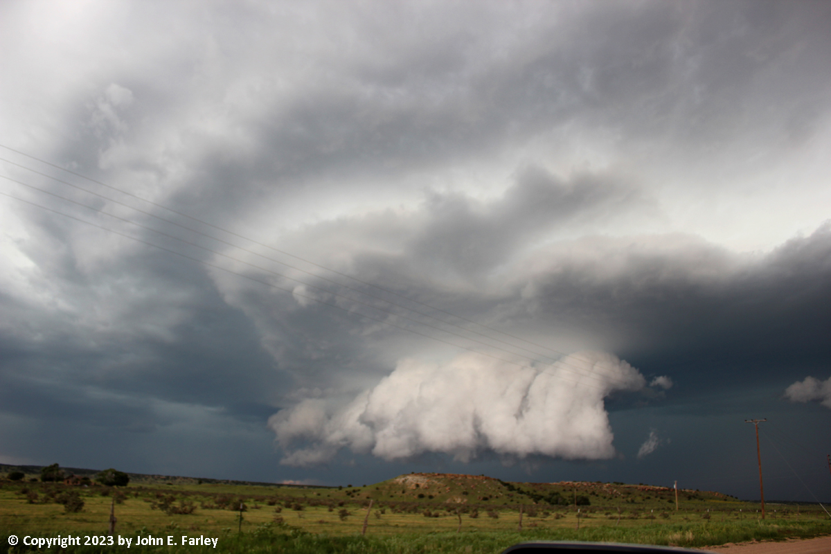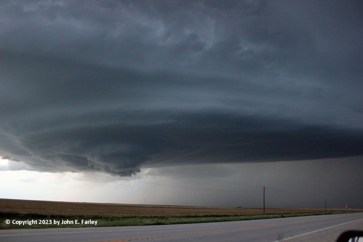 Although the storm produced tornadoes I saw both before and after I took this picture, this might be my best one from this storm. This is not a tornado, but rather dust being lofted by an intense burst of rear-flank downdraft wind, with the storm's mesocyclone in the background above.