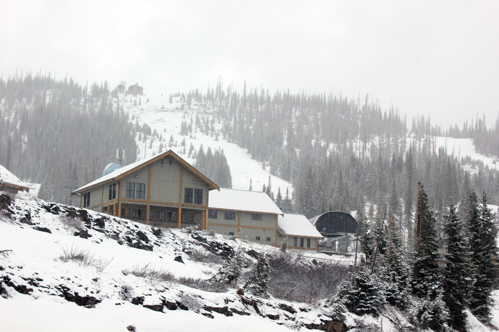 It was very pretty with the fresh snow on the trees - I'll take a view like that any time of year - but there was no thunder. By the time the picture just above was taken, it was snowing so hard that you could no longer see the ski runs - just a very fuzzy view of the base lodges. Later, when I got home, I looked at the lightning tracker and saw that there had been one strike in the snow around 15 miles south of the ski area - much too far away to get any thunder at the ski area. While I was there, I would estimate that it snowed up to a half inch, but it did not accumulate much on pavement and coming back, US 160 was just slushy between the ski area and the pass and just wet once you got much west of the pass. It had, however, been plowed due to earlier snow.