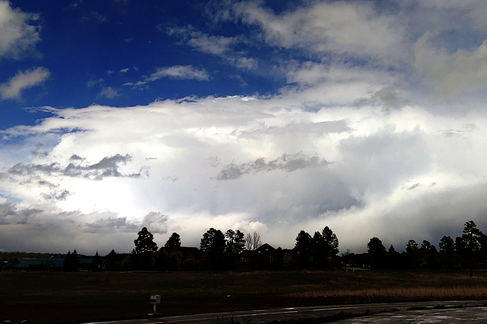 At the very end, just after the thunder, it went to nearly all graupel/snow pellets, and then it was over and the sky began to clear as the storm continued northeast. When I got back down near home, there was a nice view of the retreating storm: