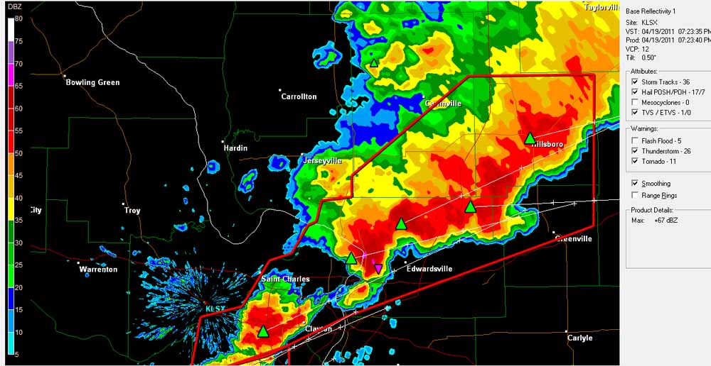 Tornadovideos.net video of the Bowling Green, MO and Litchfield, IL tornadoes