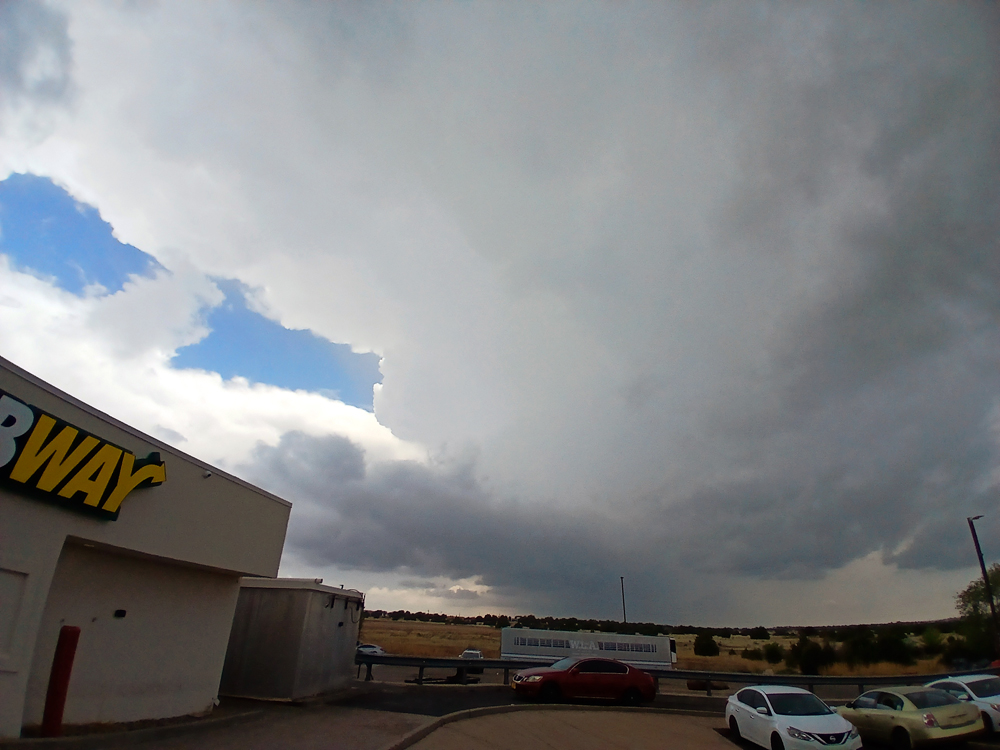 12:30 - Quick pit stop/sandwich grab in Clines Corners. First storm of day has initiated NE of there, a bit earlier and farther west than I had expected, and others were going up near I-40 to the east and NE of Vaughan.