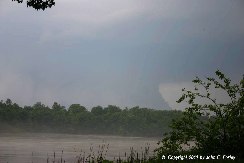 Wall cloud approaching a foggy Missouri River west of Treloar.