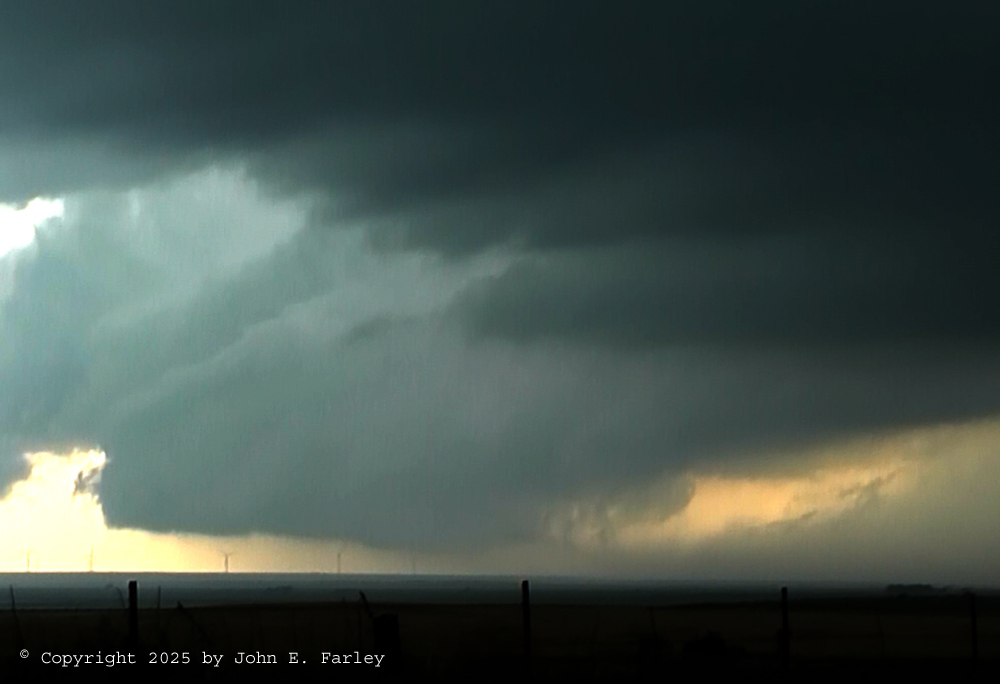 Again, with the low light, quality is not great, but with some enhancement of the contrast I think it makes a pretty dramatic image. The tornado ended less than a mile from where I was taking video, a bit closer than I thought at the time. However, it was probably still a little farther away than that when this was taken.